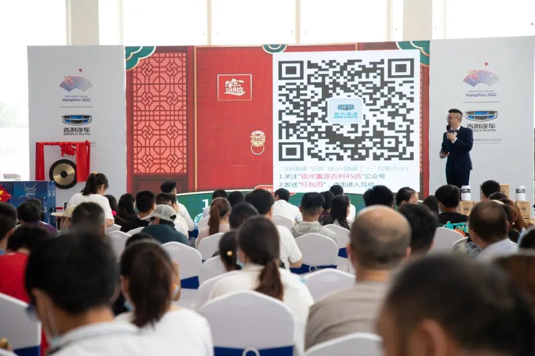 吉利4S店(宿州富源店)就在团购会现场组织了多场互动:招财进宝、乘风破浪、摇一摇赛跑等游戏,直接让团购会的氛围火热起来,客户对4S店也多了信任感和亲切感。