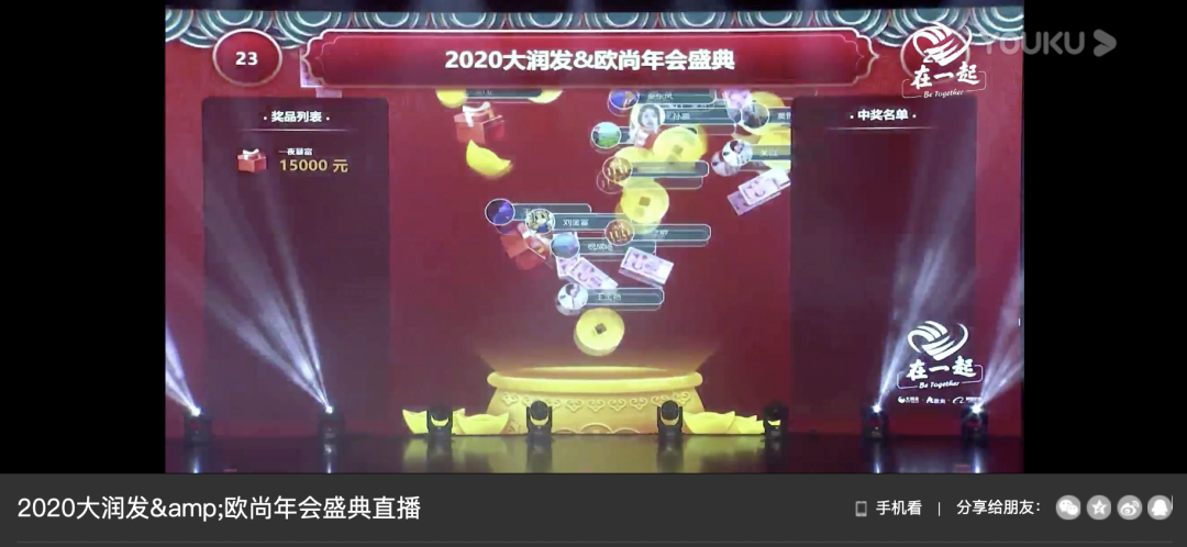 对于还是希望有个线下会场作为载体,不想去搭建一个纯线上年会会场的,可以参考大润发的云年会实现形式。